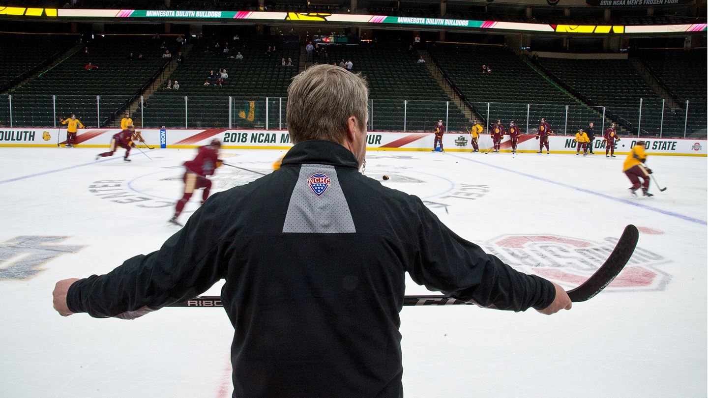 On the Bulldogs’ power-play: “Yeah, for a while it wasn’t sharp. But again it’s a two-minute power-play and those guys converted certainly at the end. And I think after that, the second one, they were feeling pretty good. They were confident. We threw them back out there and we got another quick one. So, it’s basically four of the five guys from our top, even last year, that have played together and they have a lot of creativity and chemistry together. So, they’ve come through at the right time, which is critical. You need to either get momentum off a power player or score a goal. And obviously, we needed to score a goal. And we fortunately got two, but those guys have done this before together and hopefully, they’ll continue to do well and have success. But it was the timeliness of the goals, both nights. That’s what we had in mind when he was coming in here and we felt he could do the job. And we also talked about five forwards at some point. So obviously Cole’s (Koepke) not on there, but he could be on there. But you got to let a player like him [inaudible] young guys to be in those situations. He certainly is a guy that we recruited to… that we looked at as a power-play guy. He reminds me a lot of Mikey Anderson out there as far as [inaudible] plays and he’s got good poise out there and sees the ice well. I think he saw that in the last two games here.”