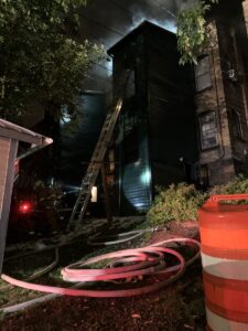 Duluth Fire / Twitter. SubmittedDuluth Fire crews responded to a structure fire in a mutual-unit apartment building in the East Hillside today. The fire has been located in the back stairwell of the building, and the apartment has been evacuated. Crews are working on putting out hot spots.