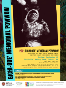Collaborators: This project is a collaboration between project manager and artist Moira Villiard alongside lead artists Michelle Defoe, Awanagiizhik Bruce, and Sylvia Houle, the Duluth Indigenous Commission, Zeitgeist Center for Arts, AIM Twin Ports Support Group, and descendents of Chief Buffalo, with sponsorship and funding by the American Indian Community Housing Organization (through Bush Foundation and Arts Midwest), the Arrowhead Regional Arts Council (through legislative appropriation from the arts and cultural heritage fund), a Creative Support for Individuals Grant through the Minnesota State Arts Board, the Duluth Superior Area Community Foundation, and the IOBY Artists Lead program